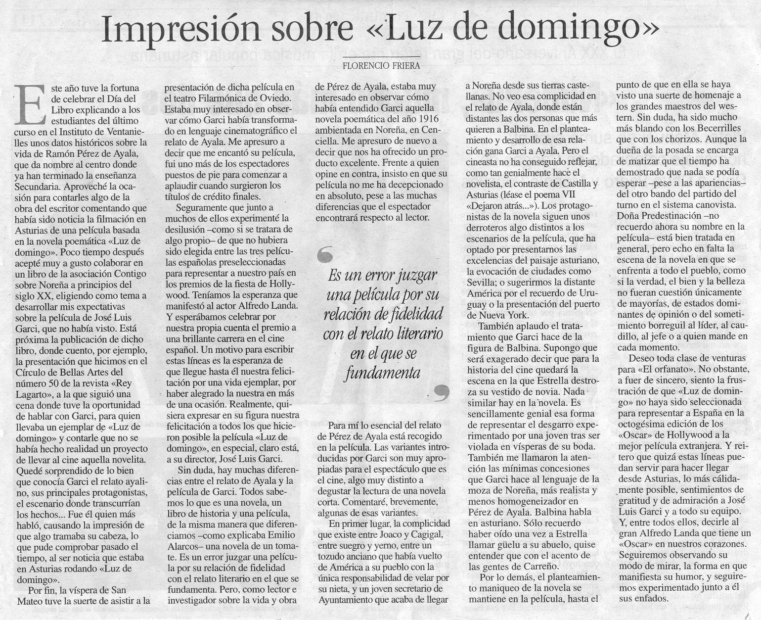 Proyección de la Película: Luz de Domingo.